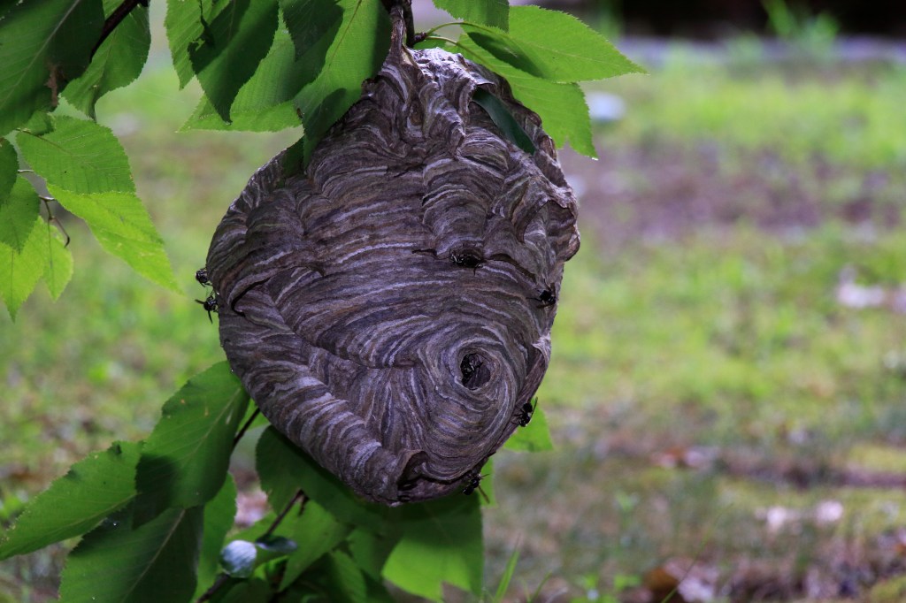 A hornet’s nest in out backyard.