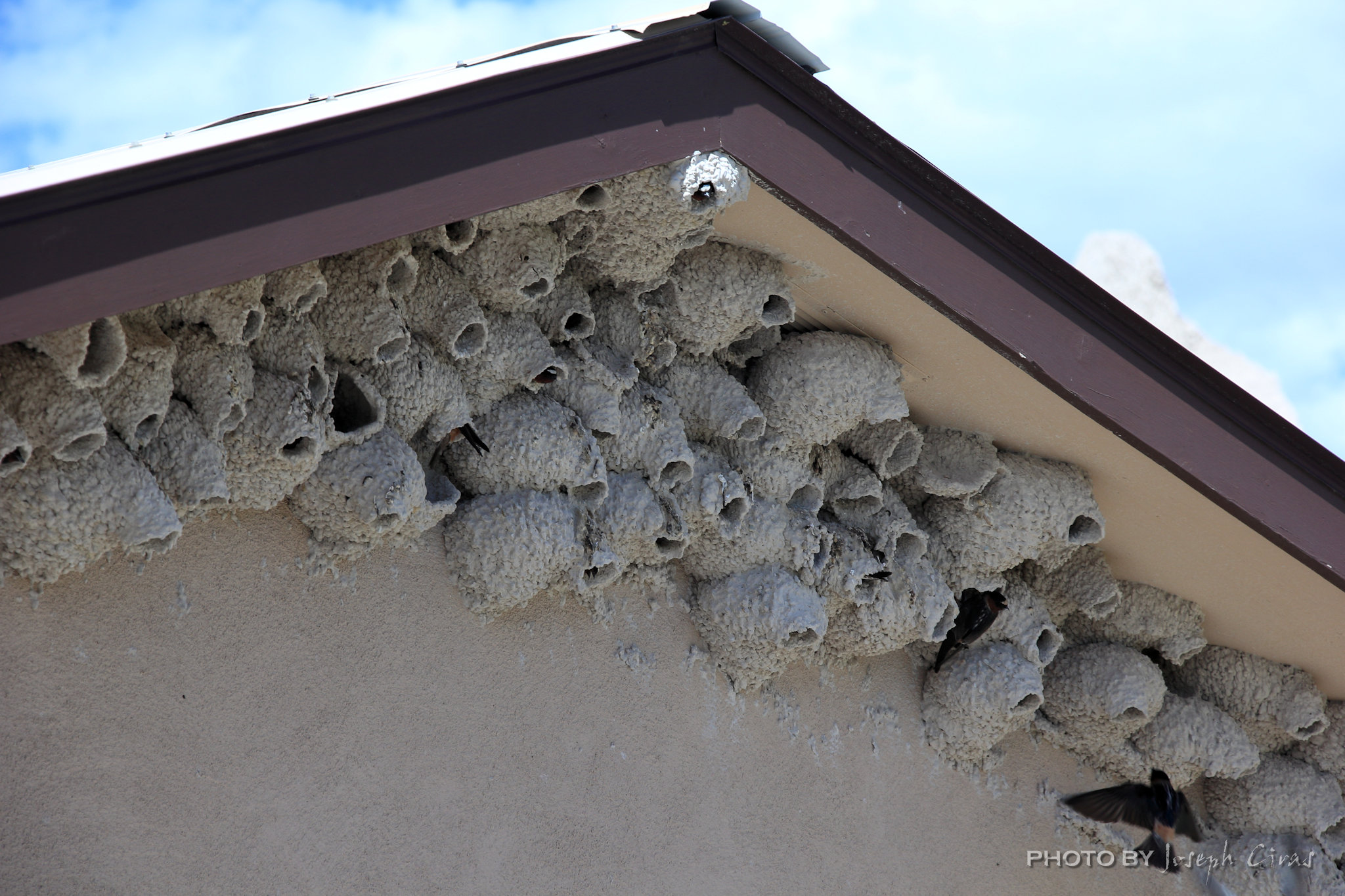 Walking around Badlands, we saw a swam of birds coming out of a kiosk. When we saw the enclosure, we saw all the nests on it. What you see was on all four sides if the information kiosk.