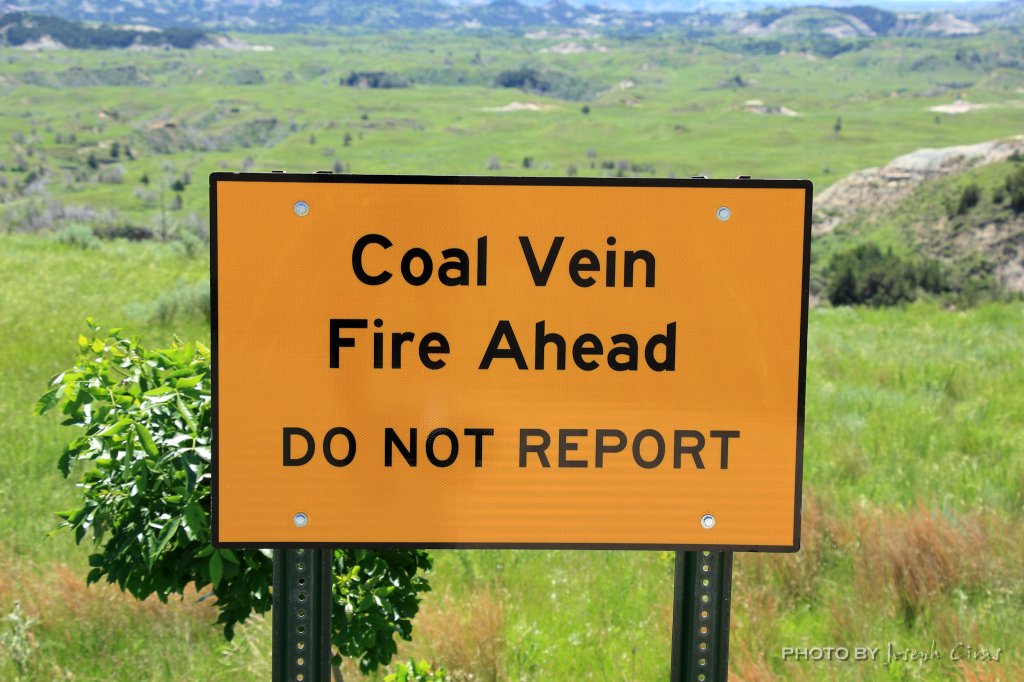 The coal fire in Badlands was set during a controlled burn. The burn set off a vein of coal. You could smell smoke in the area. The only time they suggested you reported the fire is if you saw flames from the vein.