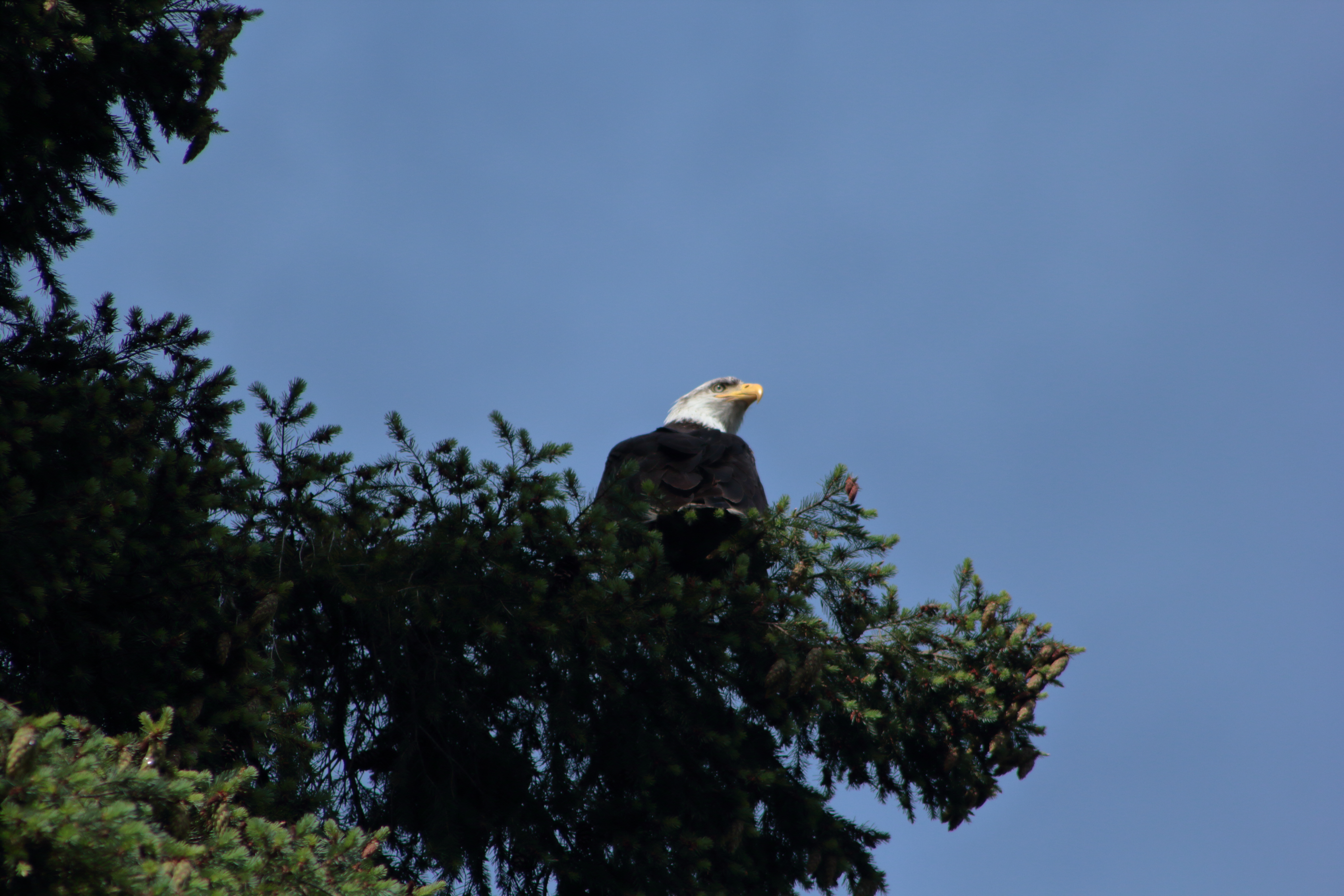 This Bald Eagle just caught a fish, brought it to the top of this tree, and had its dinner.