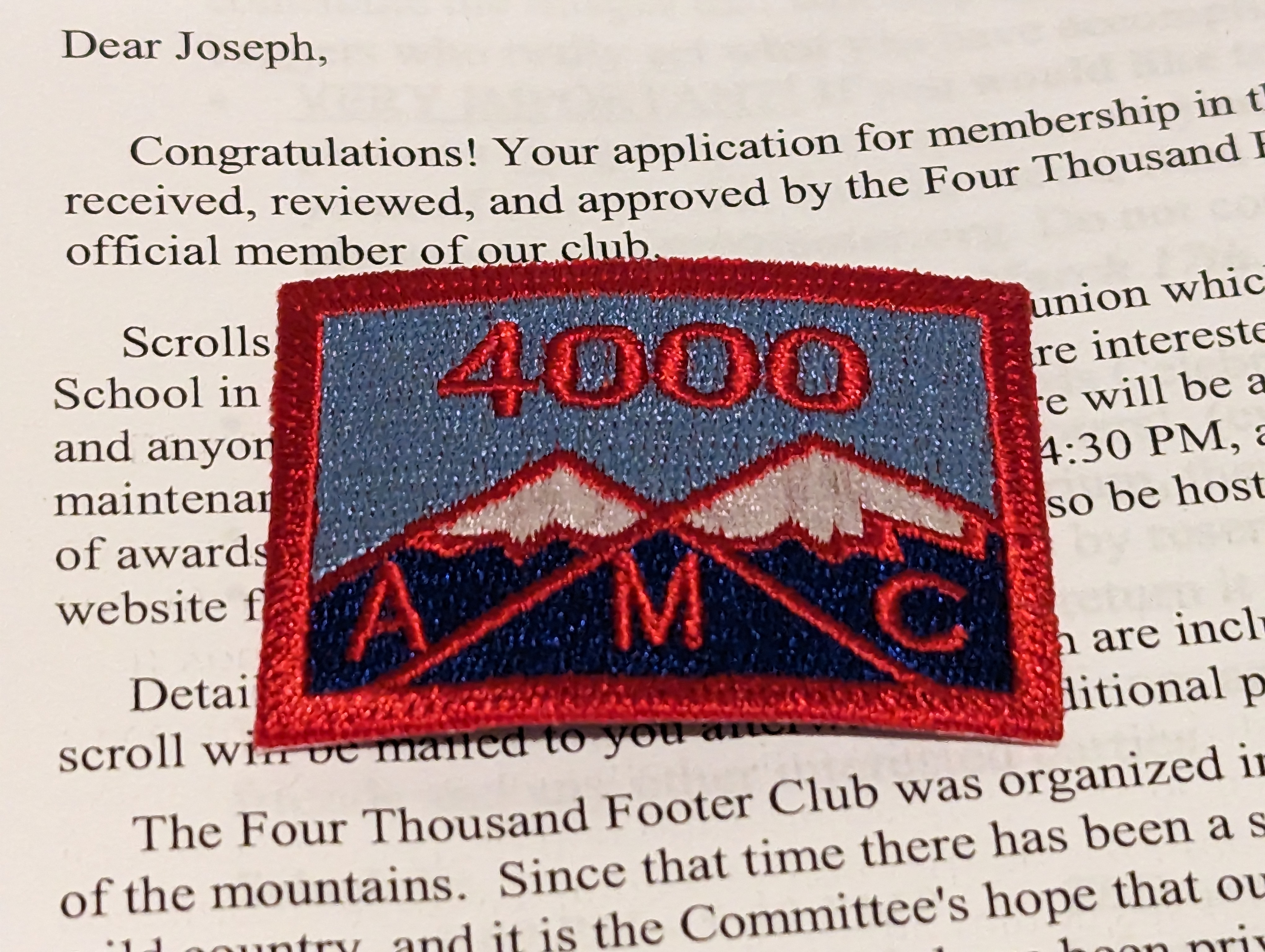 The second item I would like to show this week is my patch for completing all 48 of New Hampshire’s highest mountains. These are all over 4,000 feet in height. The shortest of these mountains is Mount Tecumseh at 4,003 feet and the tallest being Mount Washington at 6,288 feet. To be on this list there must be a 200-foot prominence between peaks. There are many other mountains that are over 4,000 feet but they do not meet the 200-foot rule. Follow this link for a history of the 4,000 foot club.