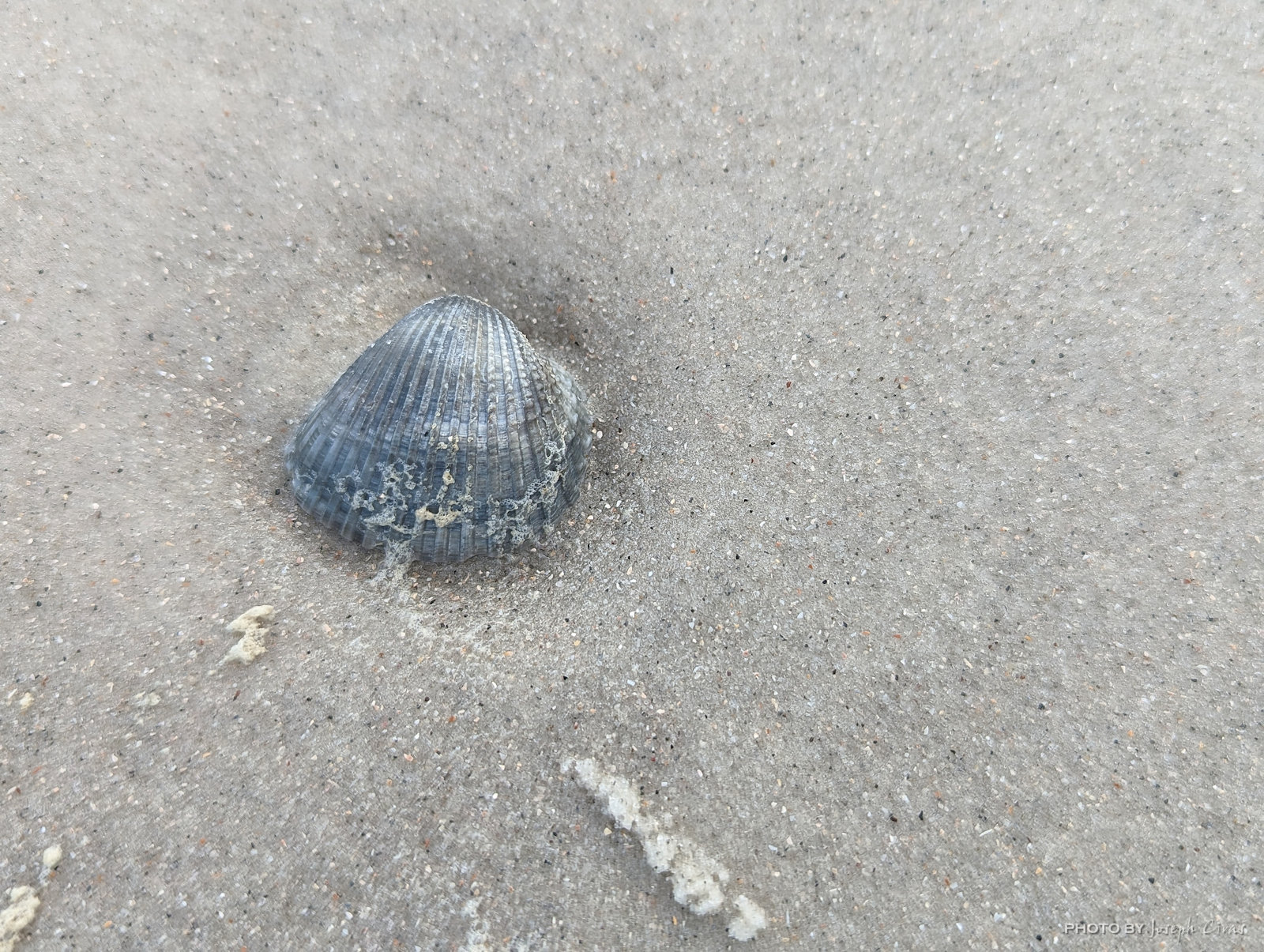 We reached our destination and took a walk on the beach. I took a photo of this shell because of its color. The beach was full of white shells. I did not see many shells that were dark. This shell is a common cockle shell. The common cockle (Cerastoderma edule) is a species of edible saltwater clam.