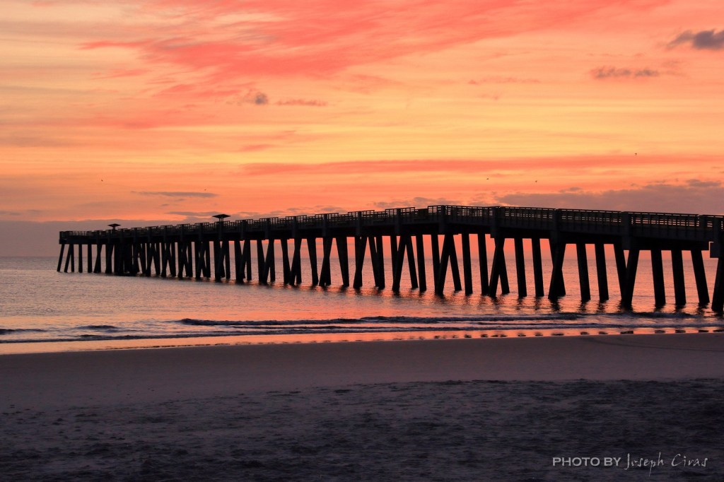 The Jacksonville Beach Fishing Pier is nearly a quarter of a mile long and offers visitors close-up views of the Atlantic Ocean. The pier was closed for years because Hurricane Matthew wiped out part of the pier in 2016, then Hurricane Irma damaged it some more in 2017. Unfortunately the pillions on the pier do not make a good of a photo as the last pier did. At least this one might hold up to hurricanes.