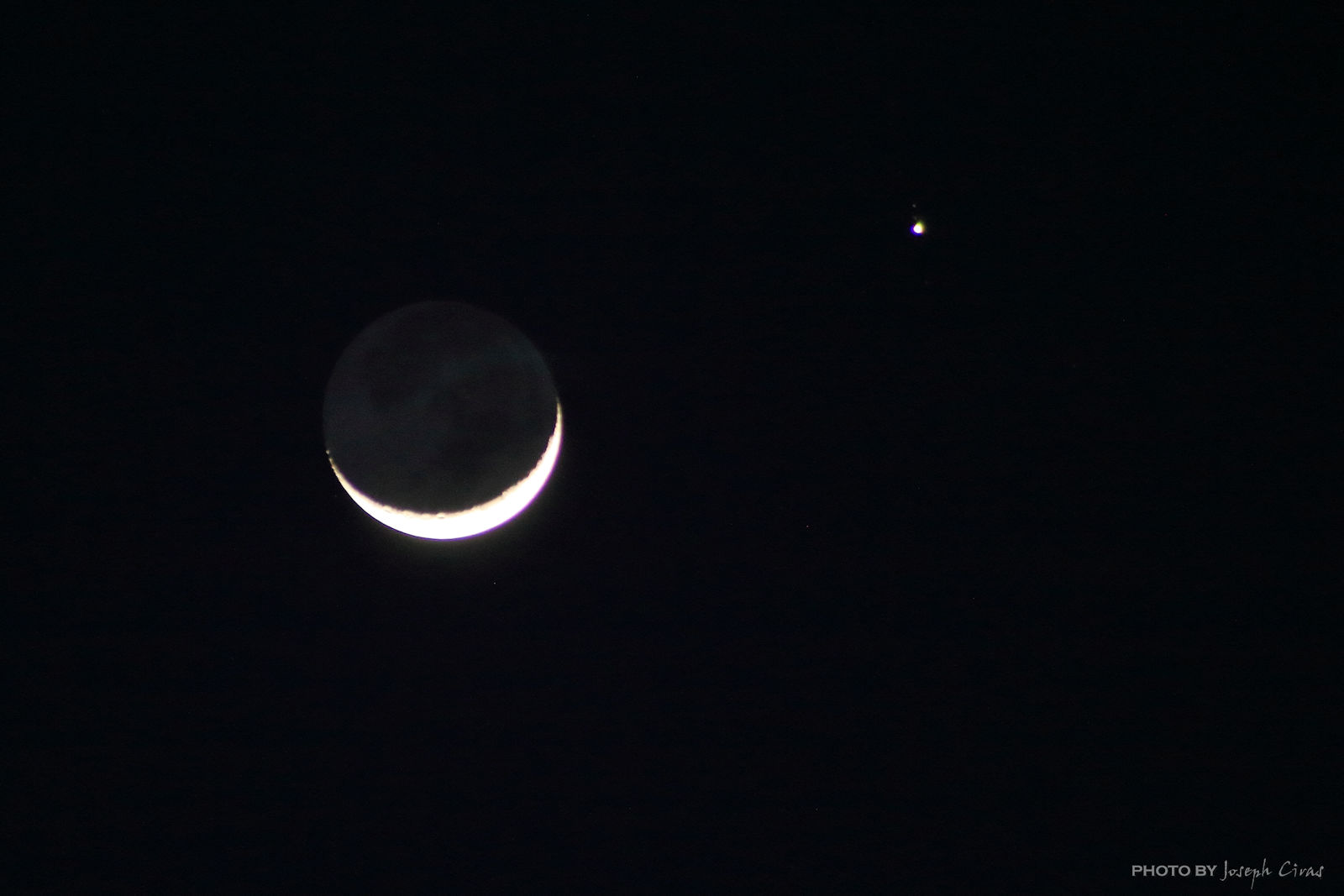 Tonight, while visiting family members, I saw the moon and Jupiter. Later on, I saw the moon, Jupiter, and Venus. I took out my camera and took a series of shots just after sunset. These photos are ones I took a little later at night at night time. These photos are handheld photos.