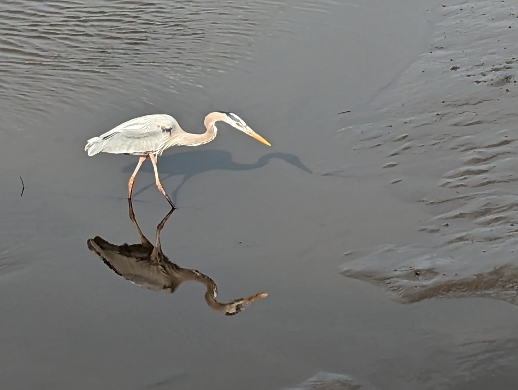 I also took a walk in a nature preserve and saw this great blue heron. It was going to be a quick walk so I only had my cell phone. Watched it for about 15 minutes and it did not catch a fish. I do like the reflection and the shadow.