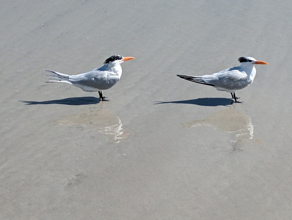 Here is a gull and a Royal Tern that was hanging out with us on the beach.