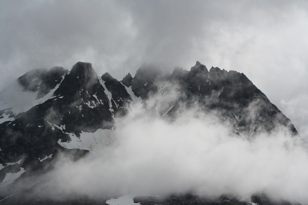 We took a ride on the White Pass Railroad on our trip to Alaska. We did go into the Yukon to turn around. This is one of the mountains along the way. This photo is in color.