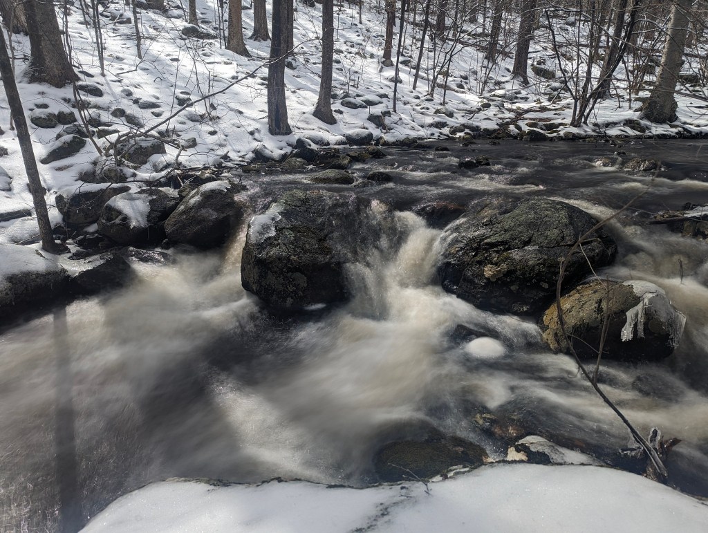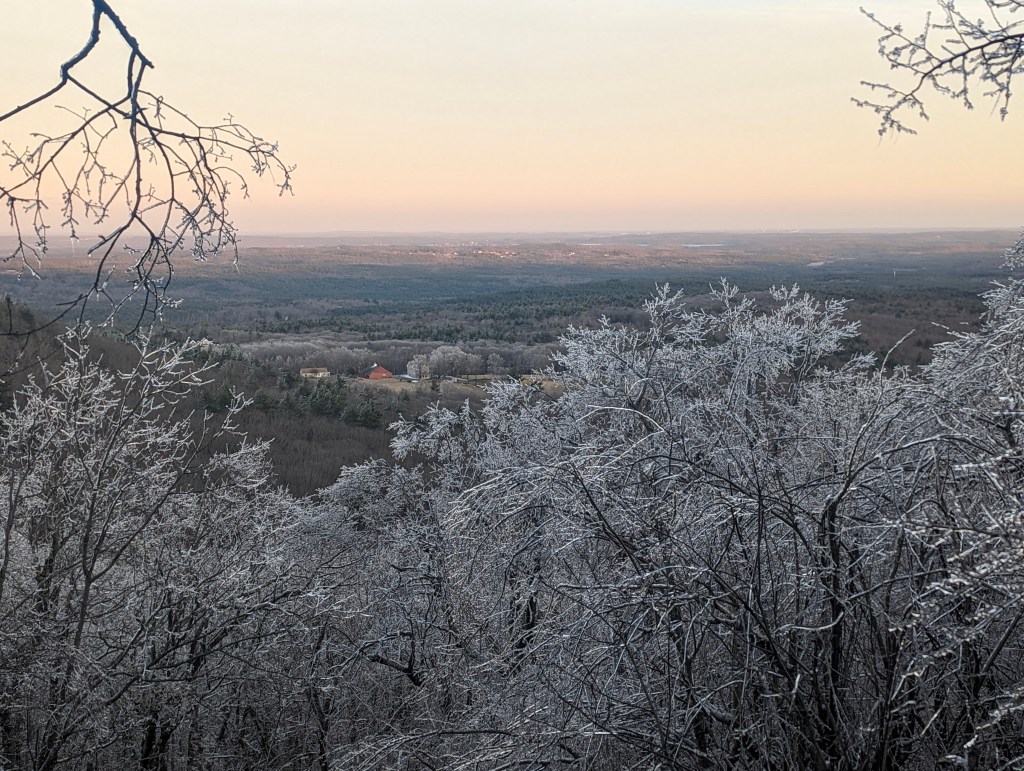 Last night’s full moon hike was good and bad. The good part was the great sunset photos with the ice. The bad was that there was a cloud bank over Boston, so we did not see the moonrise.
