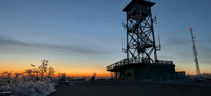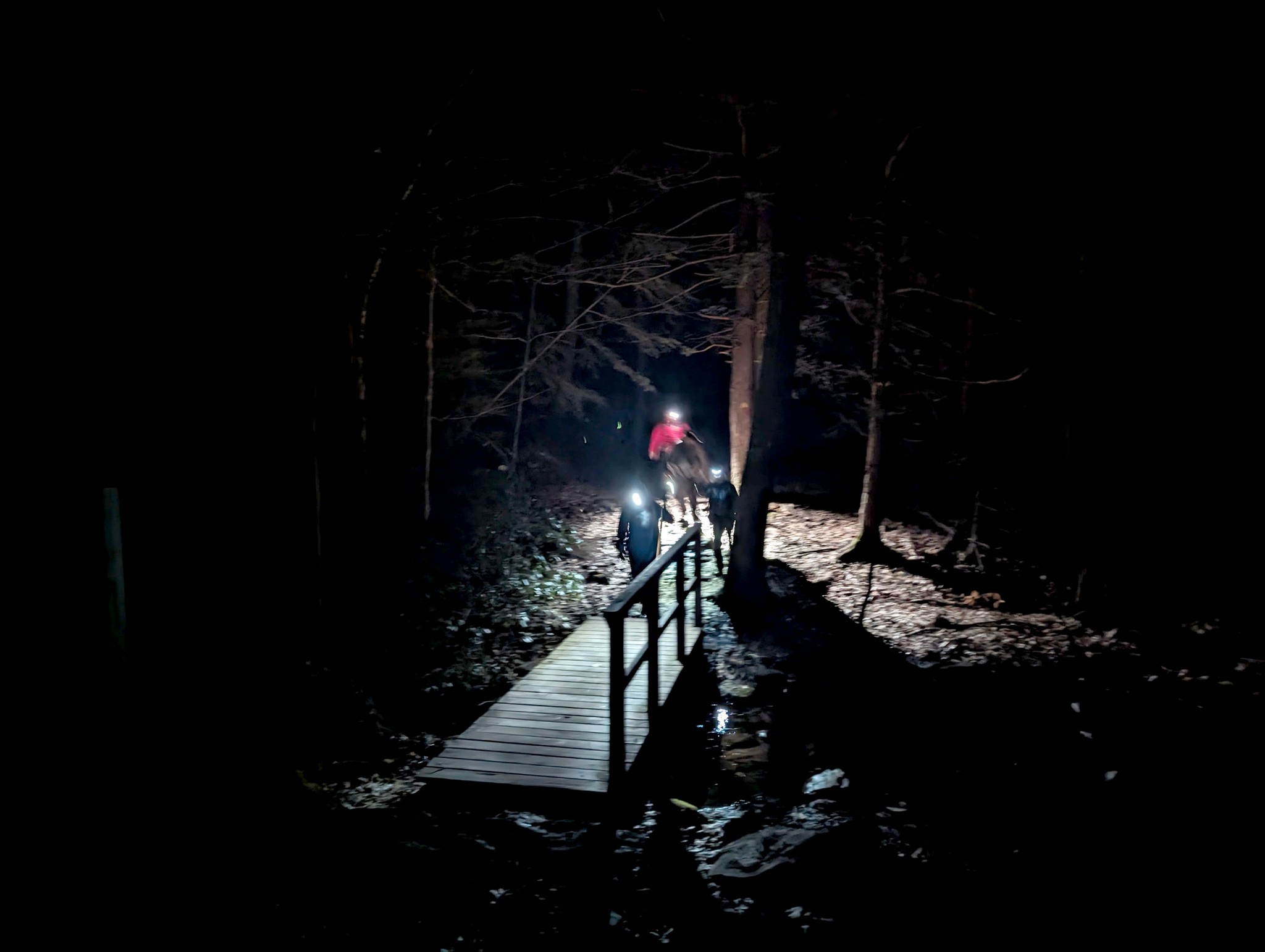 On the way down from the summit, we were on a very icy trail with ice being thrown at us from the trees. The wind was picking up and it sounded as if it were raining ice.