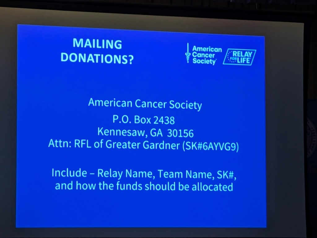 Wednesday, 03/27/2024: Posted photo — Relay for Life.