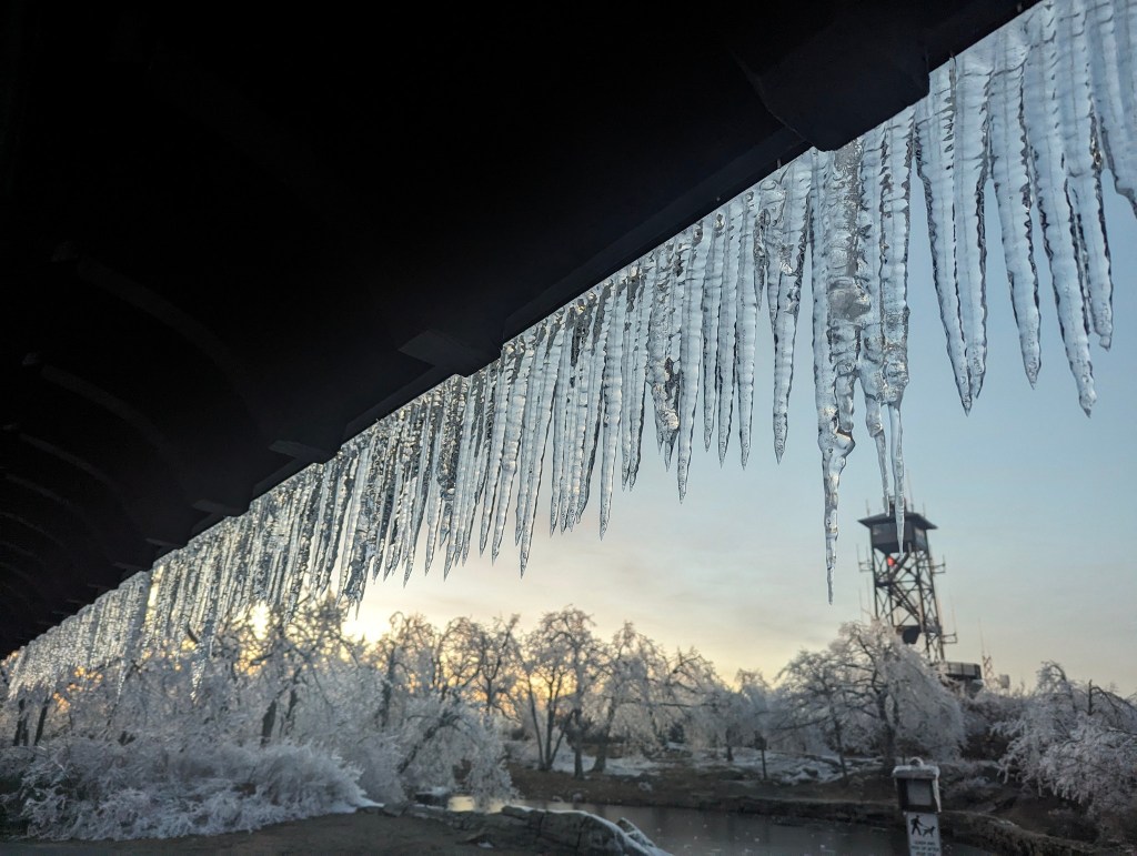Friday, 03/29/2024: Post photo — Ice on Fence.