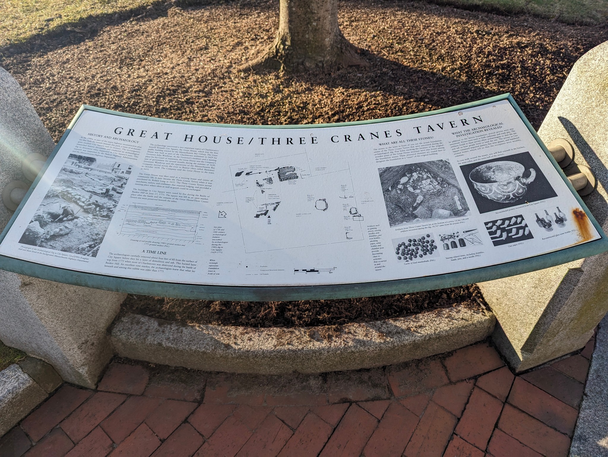 The Great House. Unearth during roadway construction, the Great House was built in 1633 and was the first public building erected in the Massachusetts Bay Colony in Charlestown MA. It is now part of the Freedom Trail. I had training today in a building that as just off the Freedom Trail by a few hundred feet.