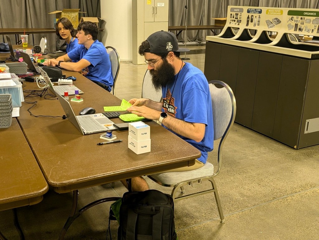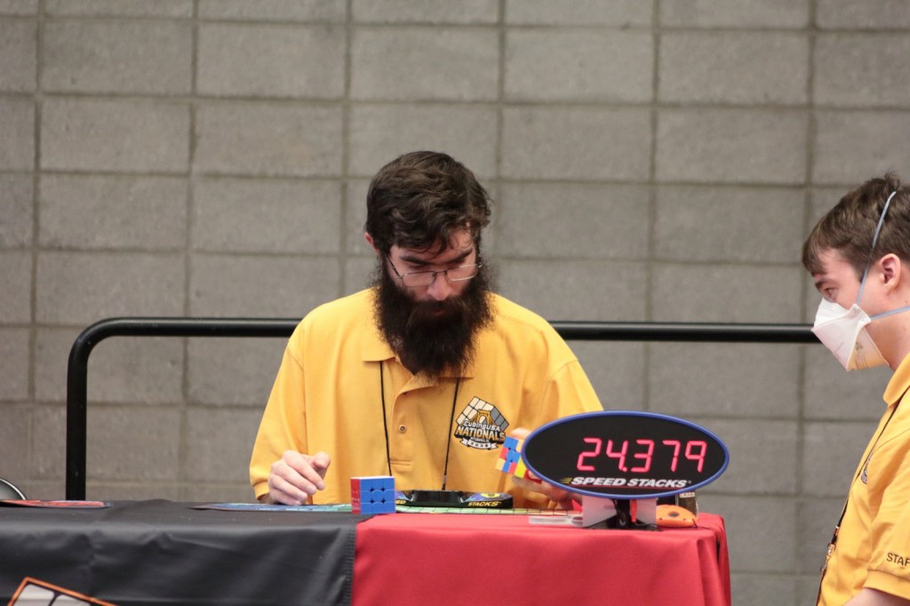 On a much needed vacation to the city of Pittsburg, PA to see our son compete in the CubingUSA Nationals 2023. He qualified in eight different events: 3×3 one hand, 5×5, 4×4, 6×6, skewb, 2×2, Pyraminx, and the 3×3. He plans on just doing one round of each and then he is on staff, entering the times of the solves.