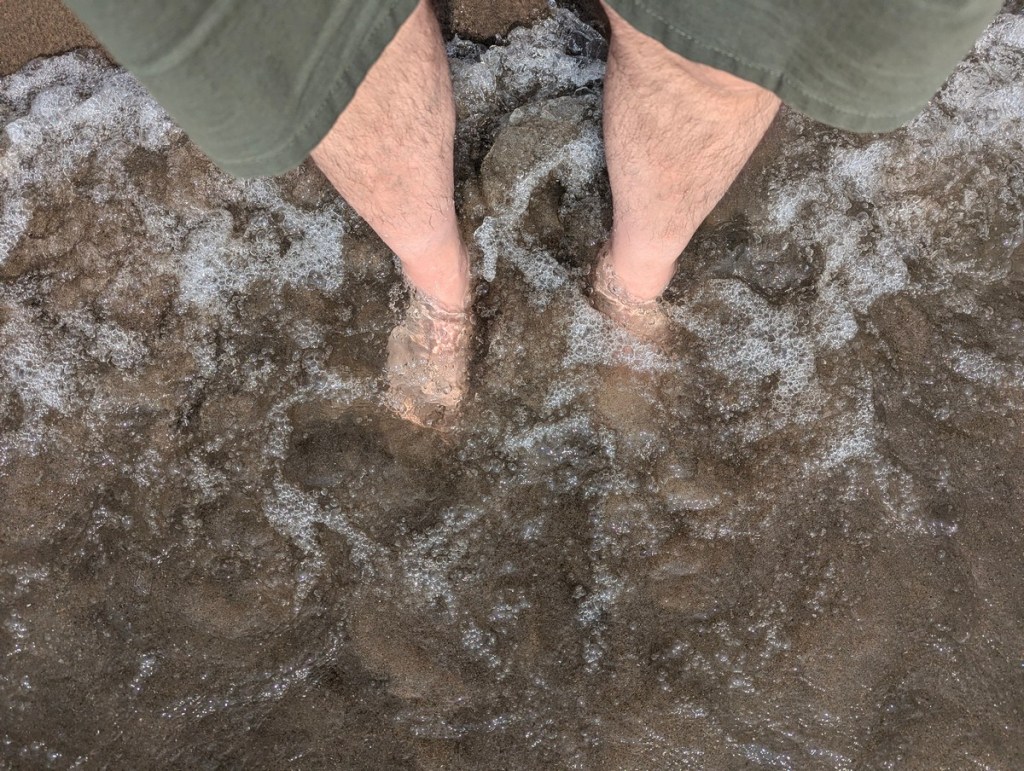 I just loved the way the sunrise looked as we walked to the beach. I timed it to get the bird in the photo.