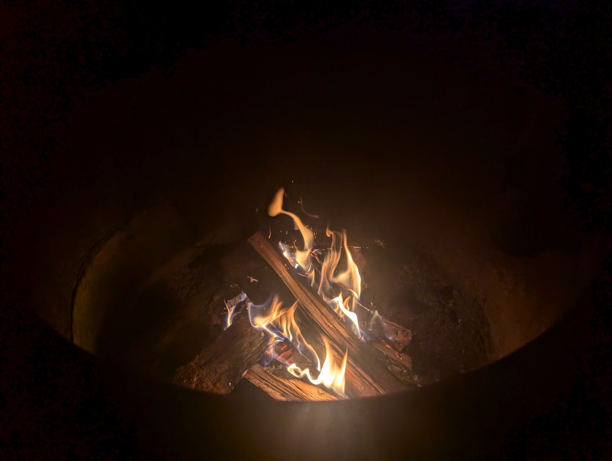 In the same campground, there was a bison that used the site markers as scratching posts. This bison also showed up in the morning. The remote campground had only 10 sites. All eyes were on the bison. People did come out of these tents as the bison moved away.