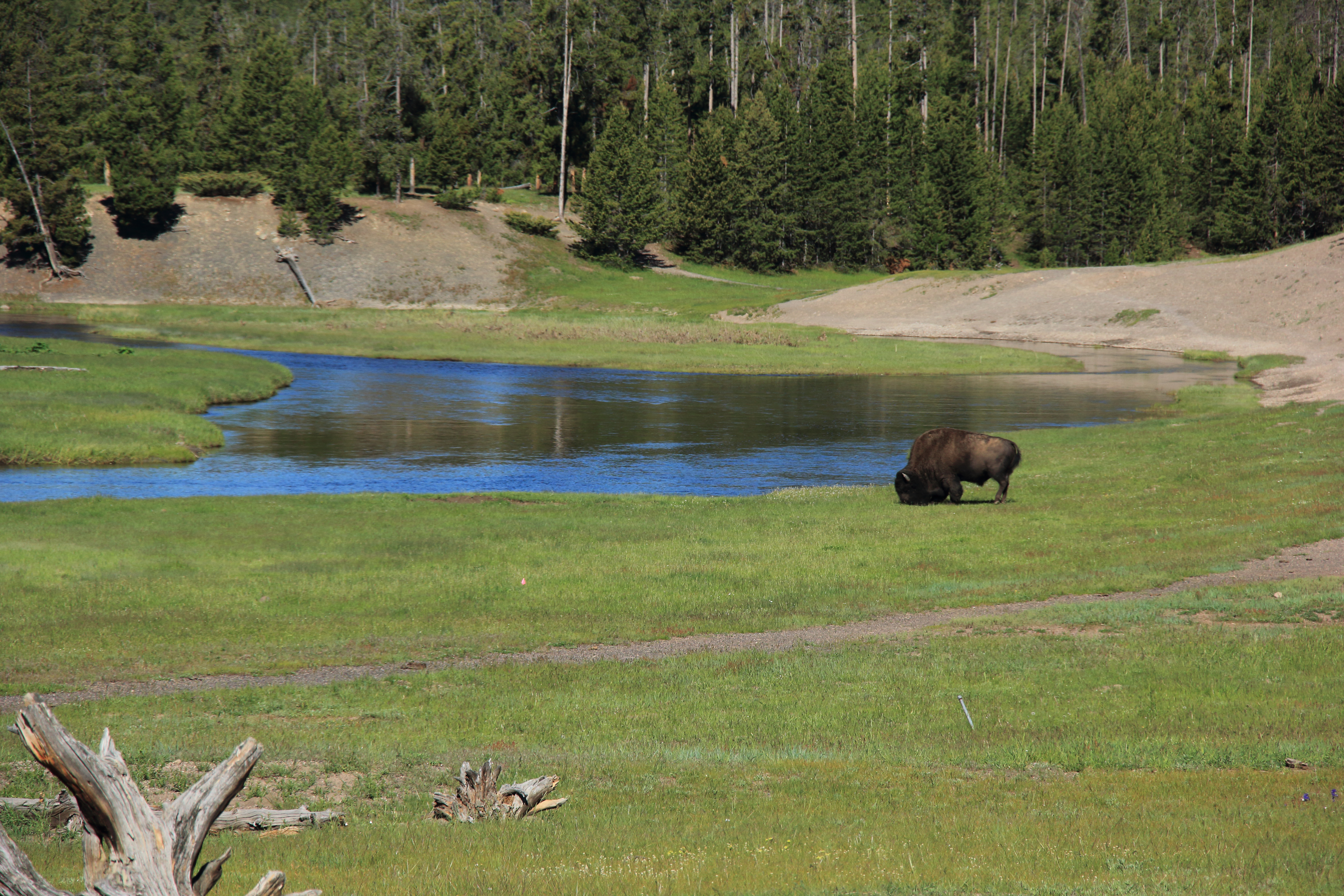At the second campground in Yellowstone, we took a walk in the morning and saw this bison by the river. There was a plaque at this location that stated that this was the exact location that the idea to make Yellowstone a national park was born.